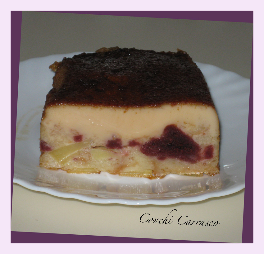 El pudín salio muy bueno, el contraste del bizcocho de red velvet y la manzana con el flan todo un lujo.